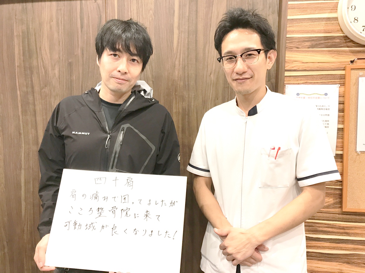 肩の痛みで困ってましたが、こころ整体院に来て、可動域が良くなりました。